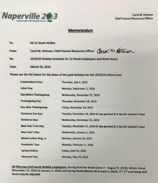 Please notice that we have a new paid holiday for the 2019/2020 Holiday Schedule,